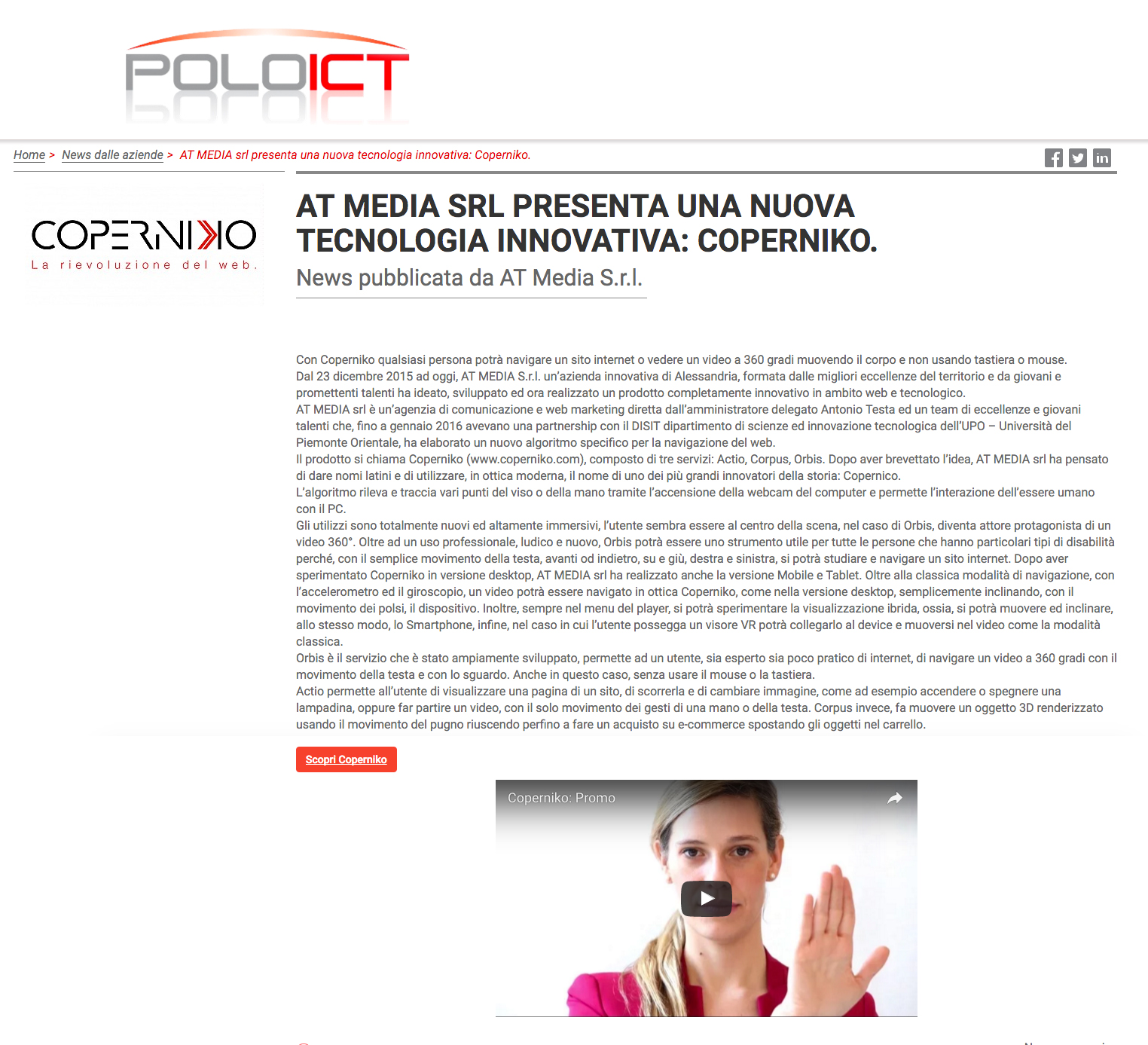 AT MEDIA SRL PRESENTA UNA NUOVA TECNOLOGIA INNOVATIVA: COPERNIKO.