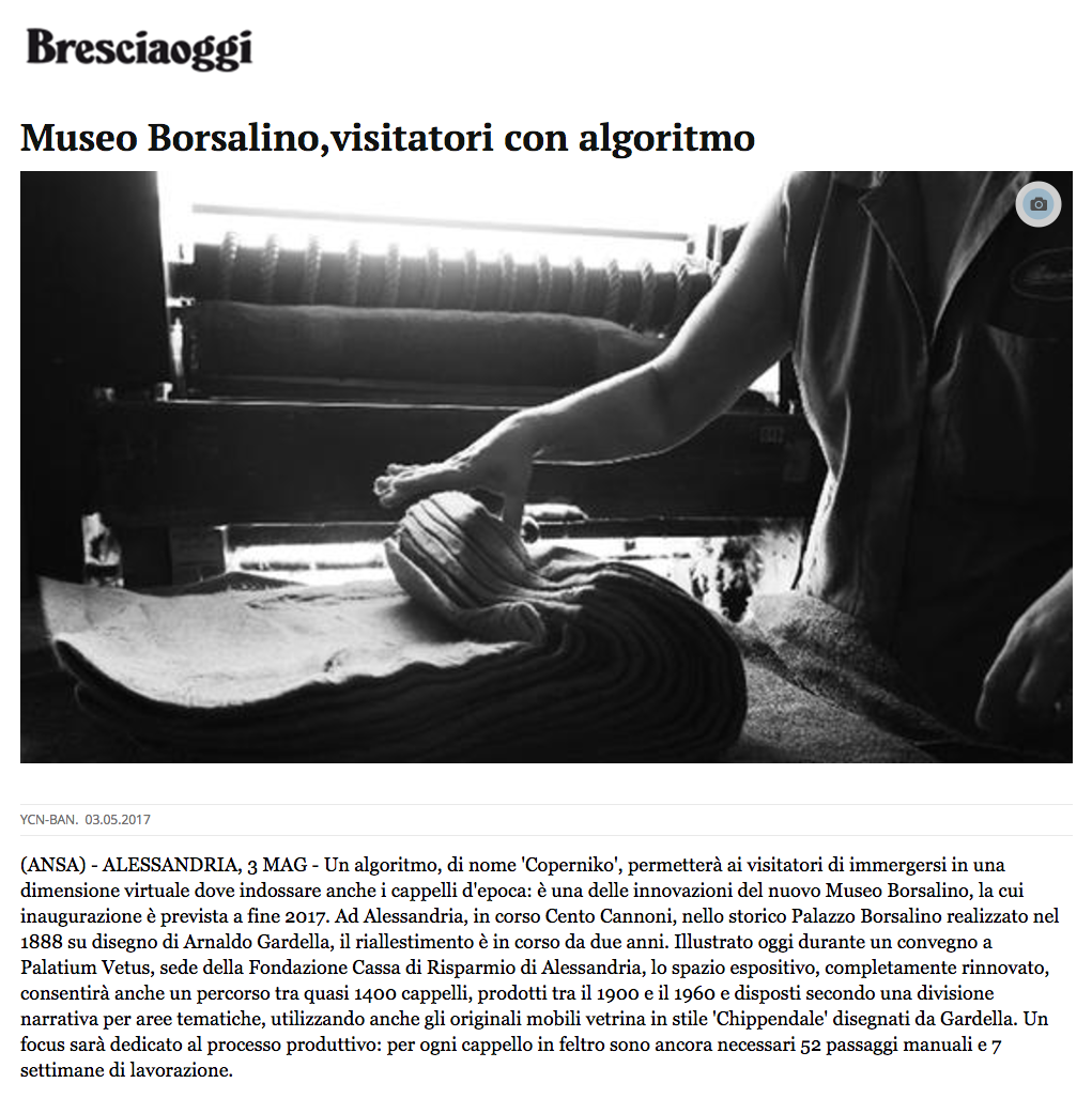 Link Esterno: http://www.bresciaoggi.it/home/spettacoli/museo-borsalino-visitatori-con-algoritmo-1.5672096