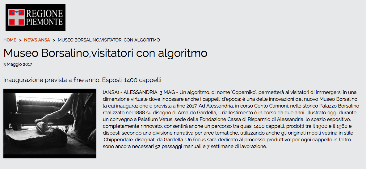 Link Esterno: http://www.regione.piemonte.it/web/index.php/news-ansa/new/8070-museo-borsalino-visitatori-con-algoritmo
